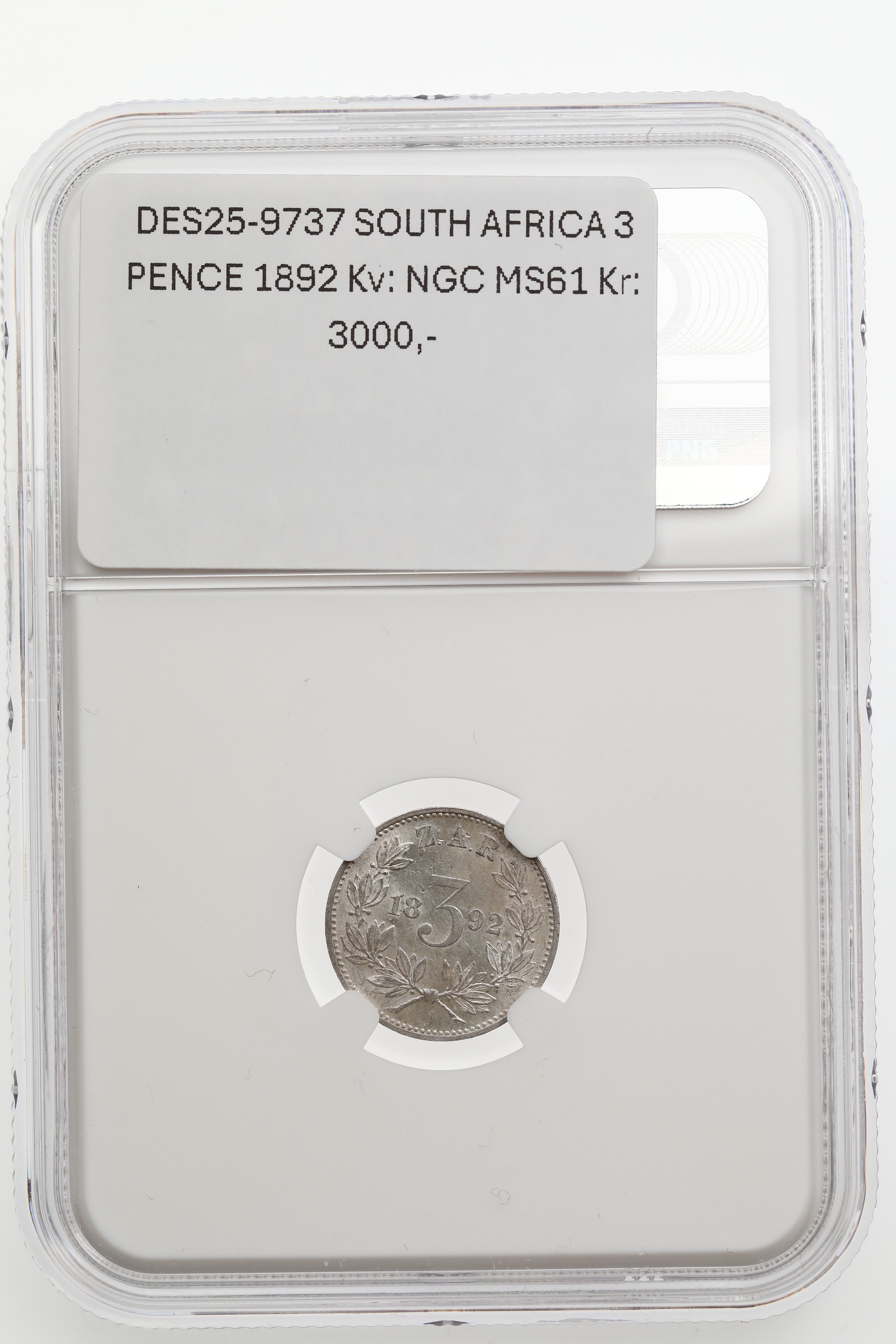 SOUTH AFRICA 3 PENCE 1892 Kv: NGC MS61