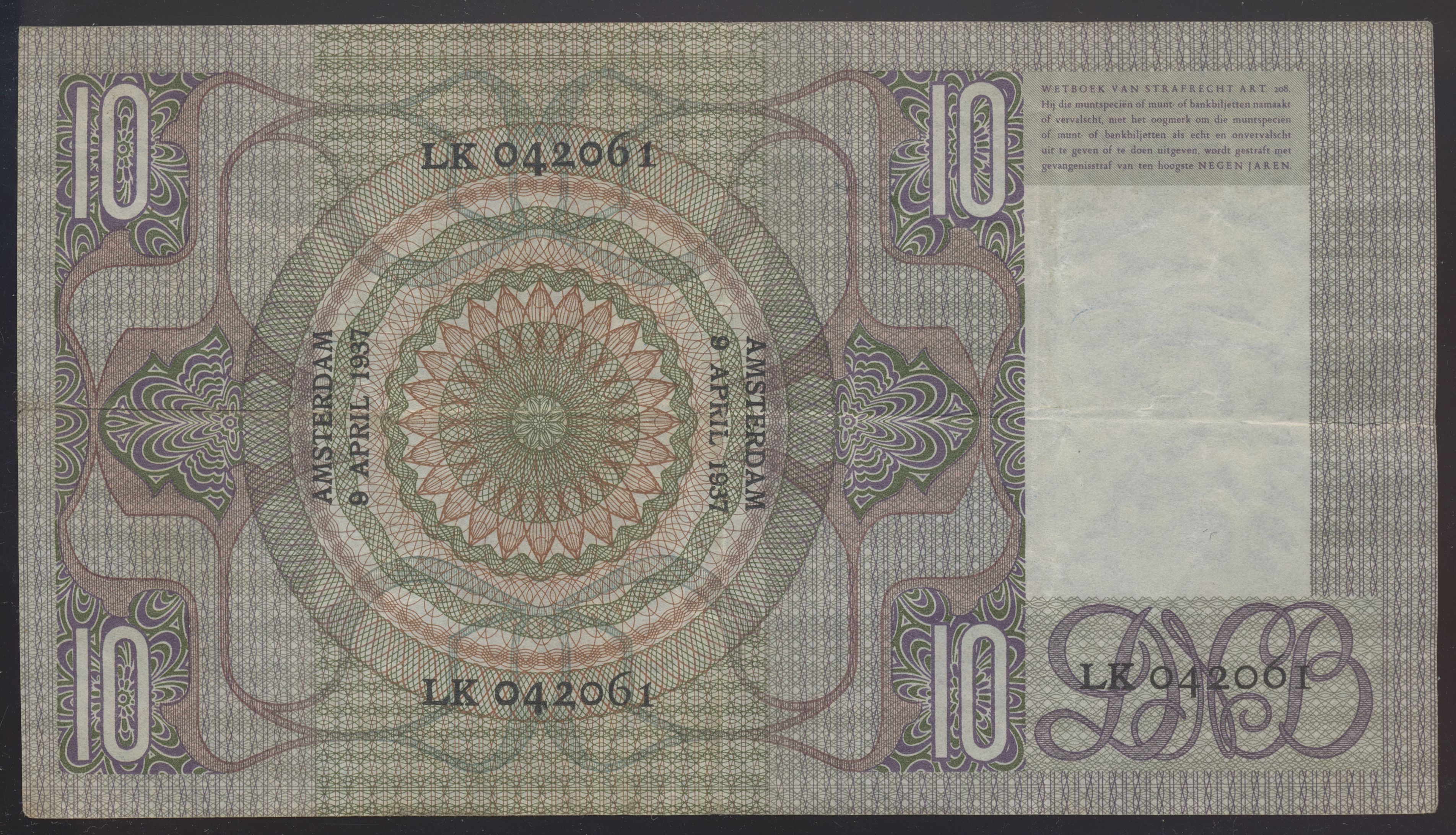 Nederland 10 Gulden 1937 VF+
