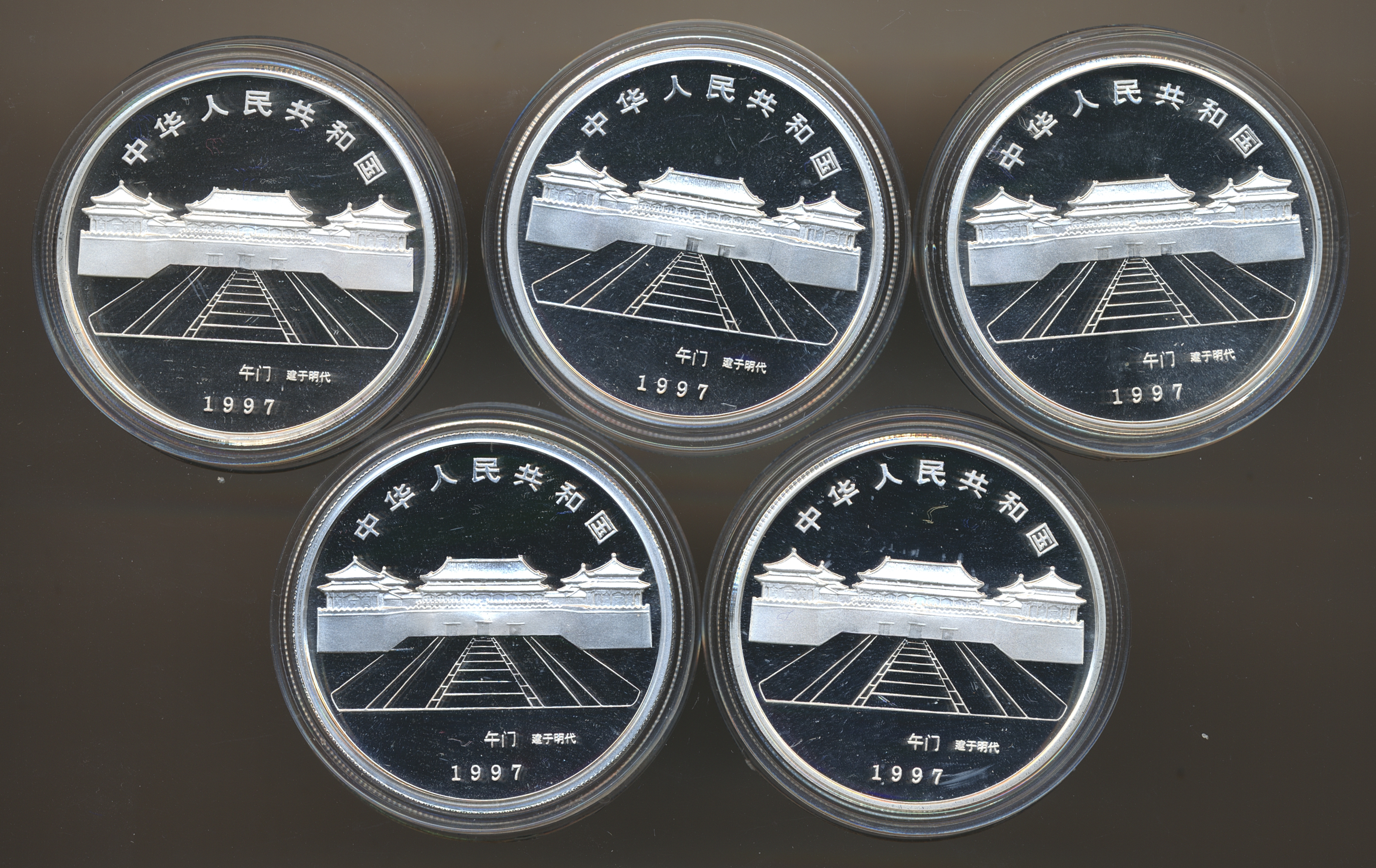 China 10 Yuan 1997 Forbidden City 5 pcs 1 Oz Silver Proof Set