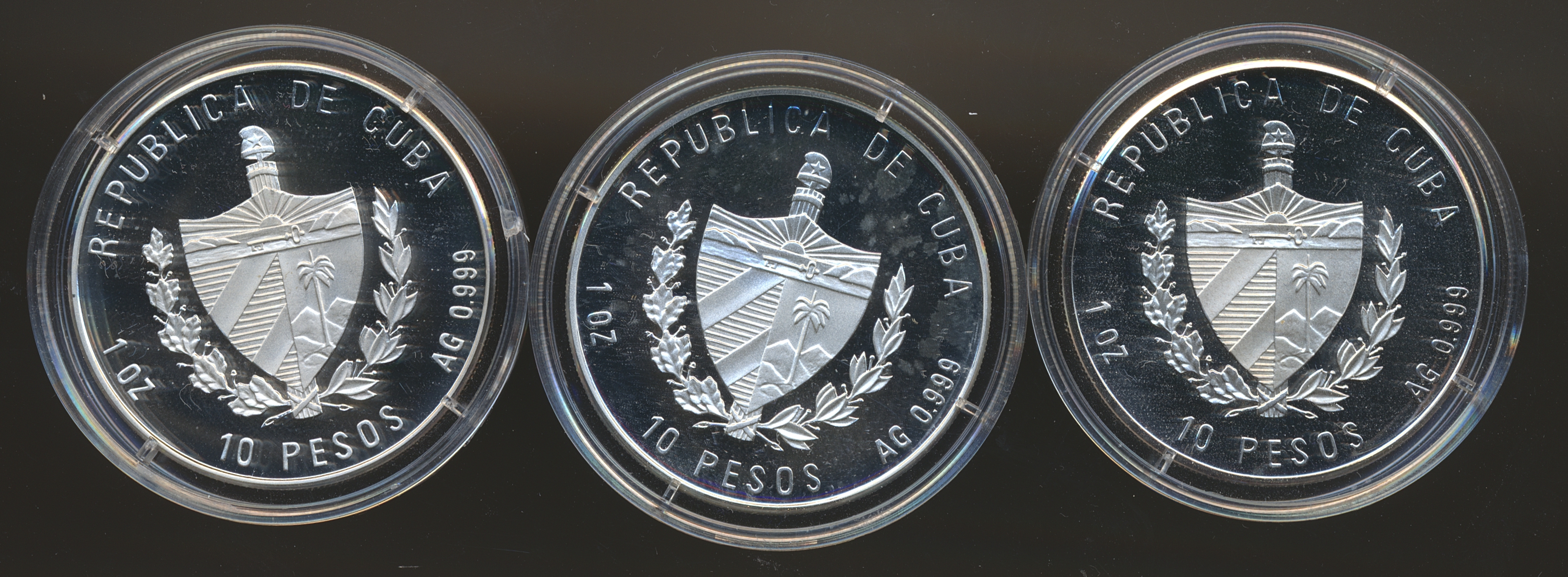 Cuba 10 Pesos 2002 Marx, Lenin and Tse Tung 1 Oz 999 Silver coins Proof